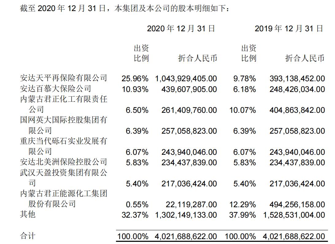 其中,安达天平再保险有限公司、安达百慕大保险公司、安达北美洲控股等均为“安达系”企业,国网英大为“君正系”企业,而武汉天盈投资集团有限公司、武汉当代(天风证券和人福医药)则为“当代系”企业。