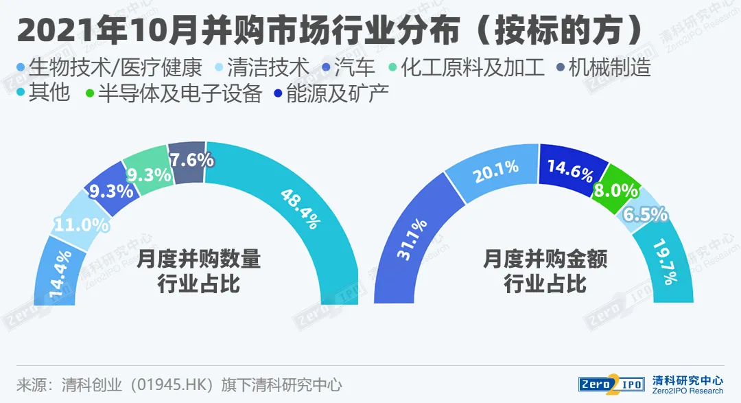 生物技术/医疗健康行业案例数第一,汽车行业交易规模居首