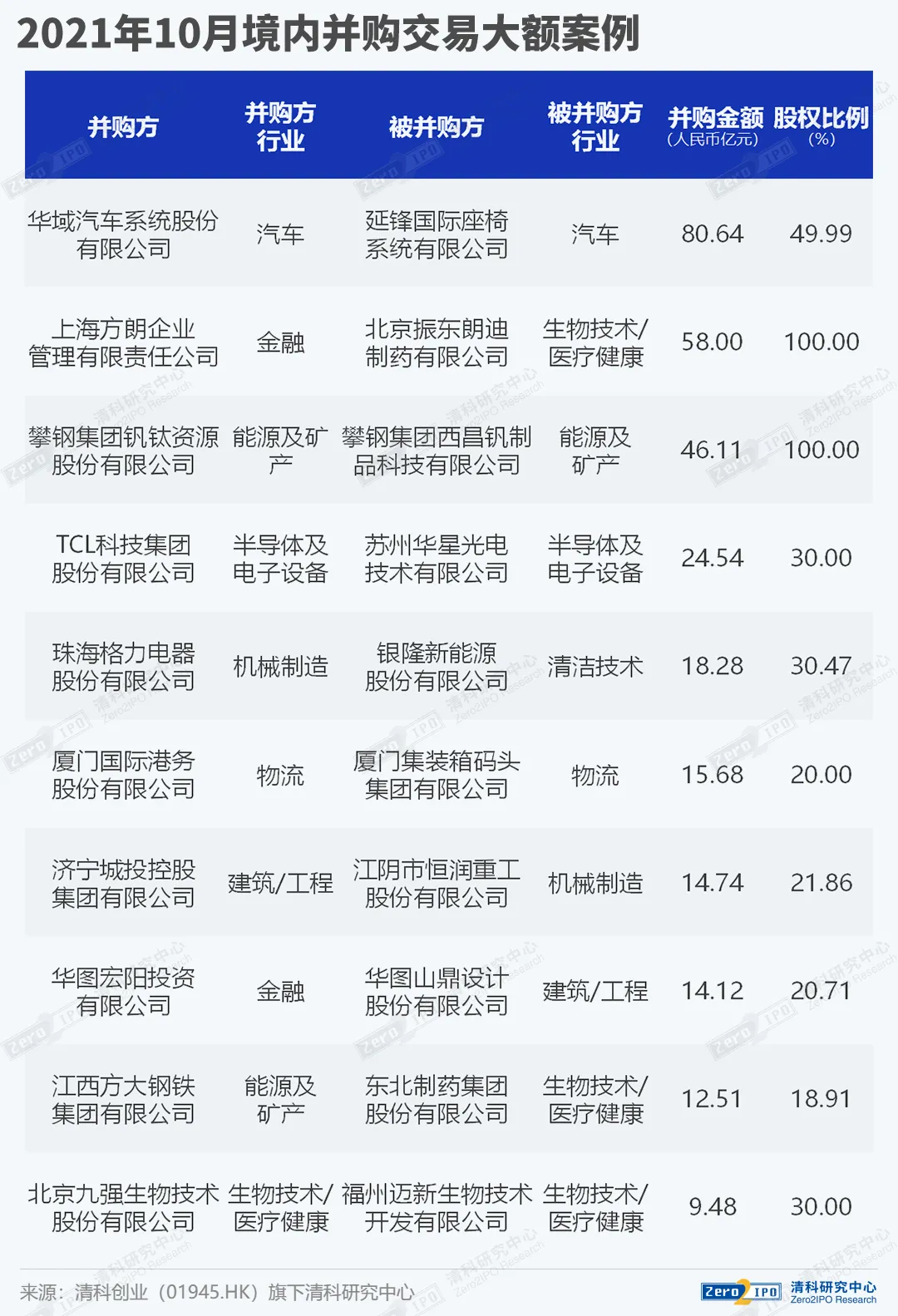 10月境内并购典型案例