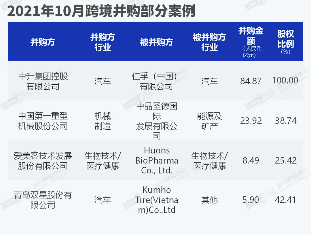 10月跨境并购典型案例