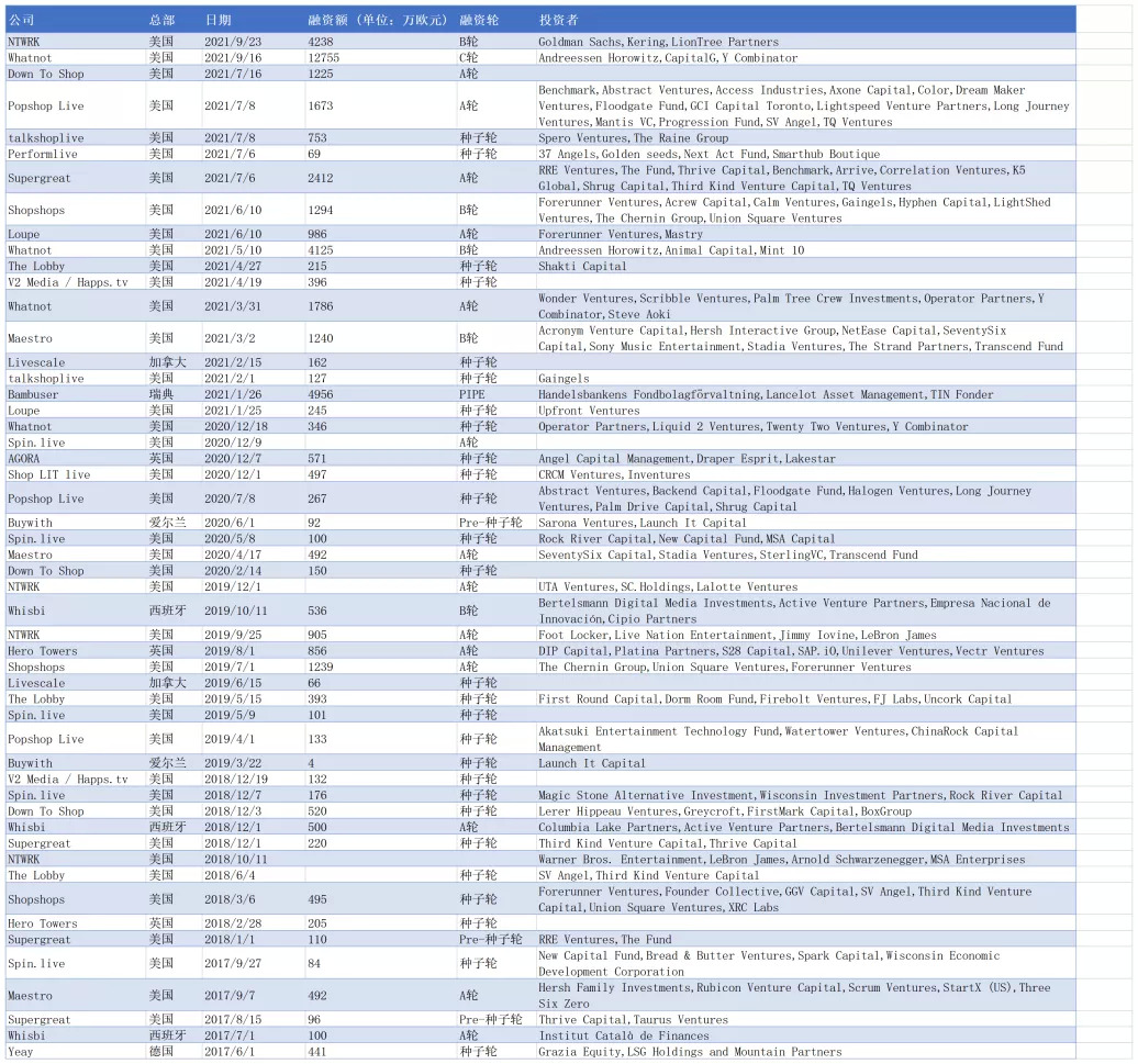 (海外直播电商相关公司部分融资情况/资料来源:公开信息整理)