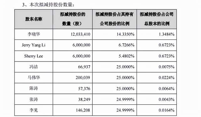 同时,公司副董事长兼总经理李晓华、董事冯洁和马伟华、监事陈涛和张涛、财务总监李见计划减持公司股份合计不超过254万股(占公司总股本的0.28%)。