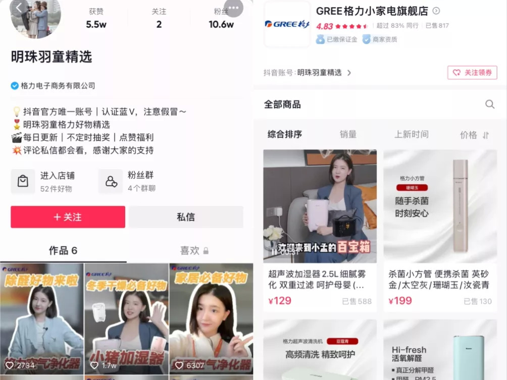 玩直播上瘾的董明珠似乎把孟羽童当成了“95后消费者的直达梯”。随即,“明珠羽童精选”的抖音账号悄然注册,又一次吸引了大众的注意。