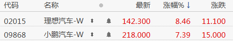 12月1日,新能源汽车股集体走高,港股方面,理想汽车(02015.HK)股价涨8.46%至142.3港元/股,小鹏汽车(09868.HK)股价涨7.39%至218港元/股,均创历史新高。同时,美股方面,小鹏汽车(XPEV.N)、蔚来(NIO.N)股价盘前涨超3%,理想汽车(LI.O)盘前涨超5%。