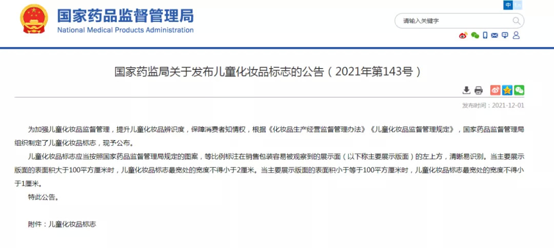 由此可见,国家药监局从有“设计儿童化妆品专用标识”的想法;到征求标志图案;再到正式发布标志,用时仅有半年。