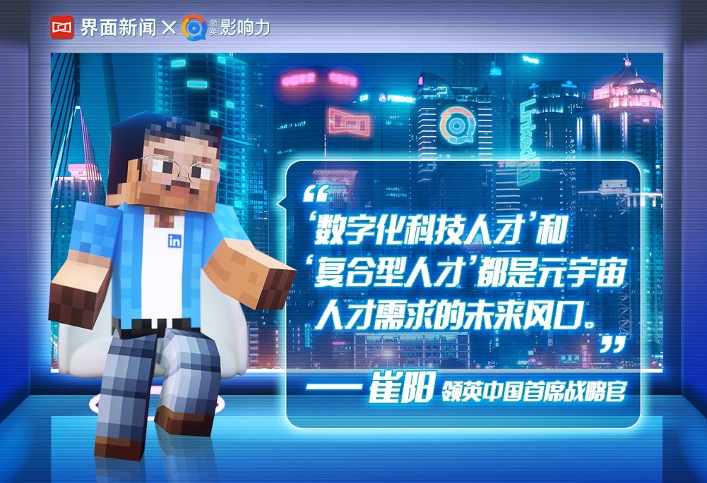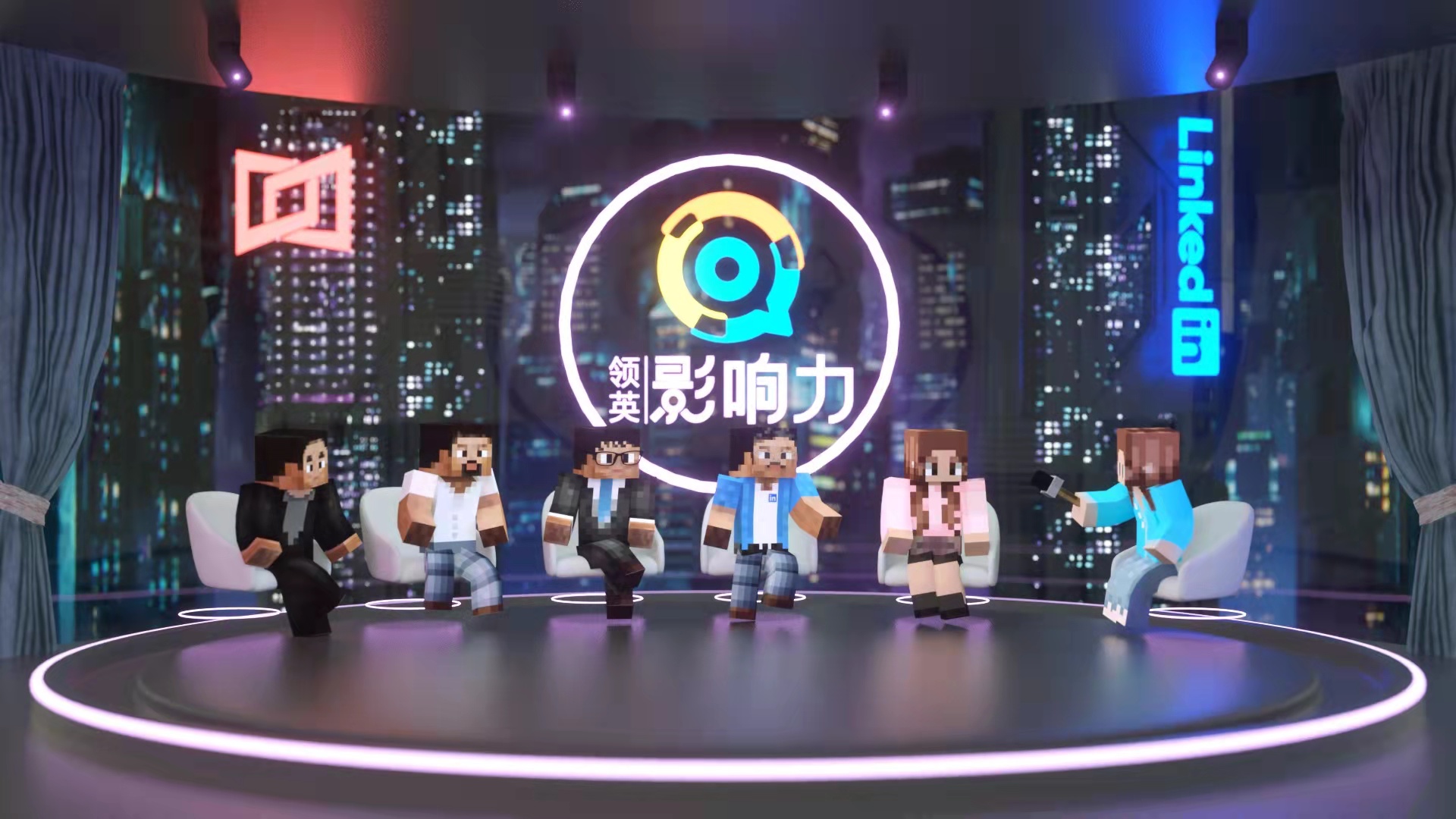 除此之外,元宇宙还有许多未知的岗位诞生。近日,围绕元宇宙的相关话题,由领英发起的《影响力》栏目特意利用Minecraft平台,打造了一个赛博朋克风的虚拟圆桌论坛,来自行业各界的五位嘉宾均以虚拟人的形象出现,而这也是对元宇宙时代论坛方式的简单模拟。