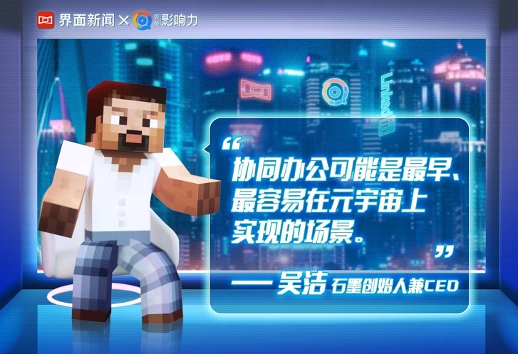 石墨创始人兼首席执行官吴洁透露,协同办公可能是最早、最容易在元宇宙上实现的场景,比如脸书(Meta)的虚拟会议室,其实就是协同开会拿到元宇宙中。
