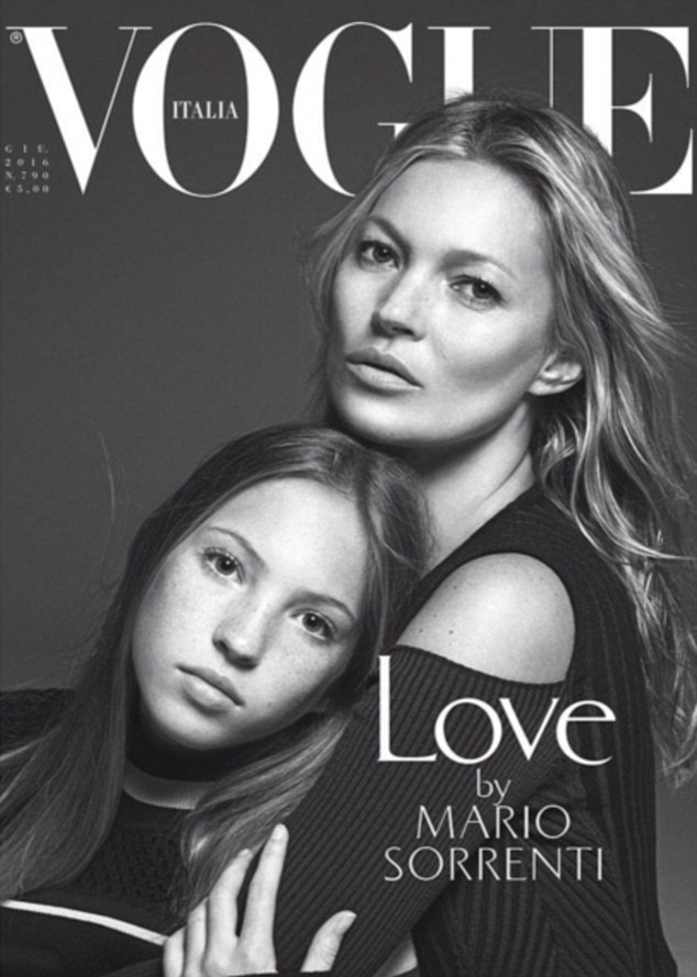 近日,超模Kate Moss带着13岁的女儿Lila Grace出现在最新一期Vogue意大利版的封面上。