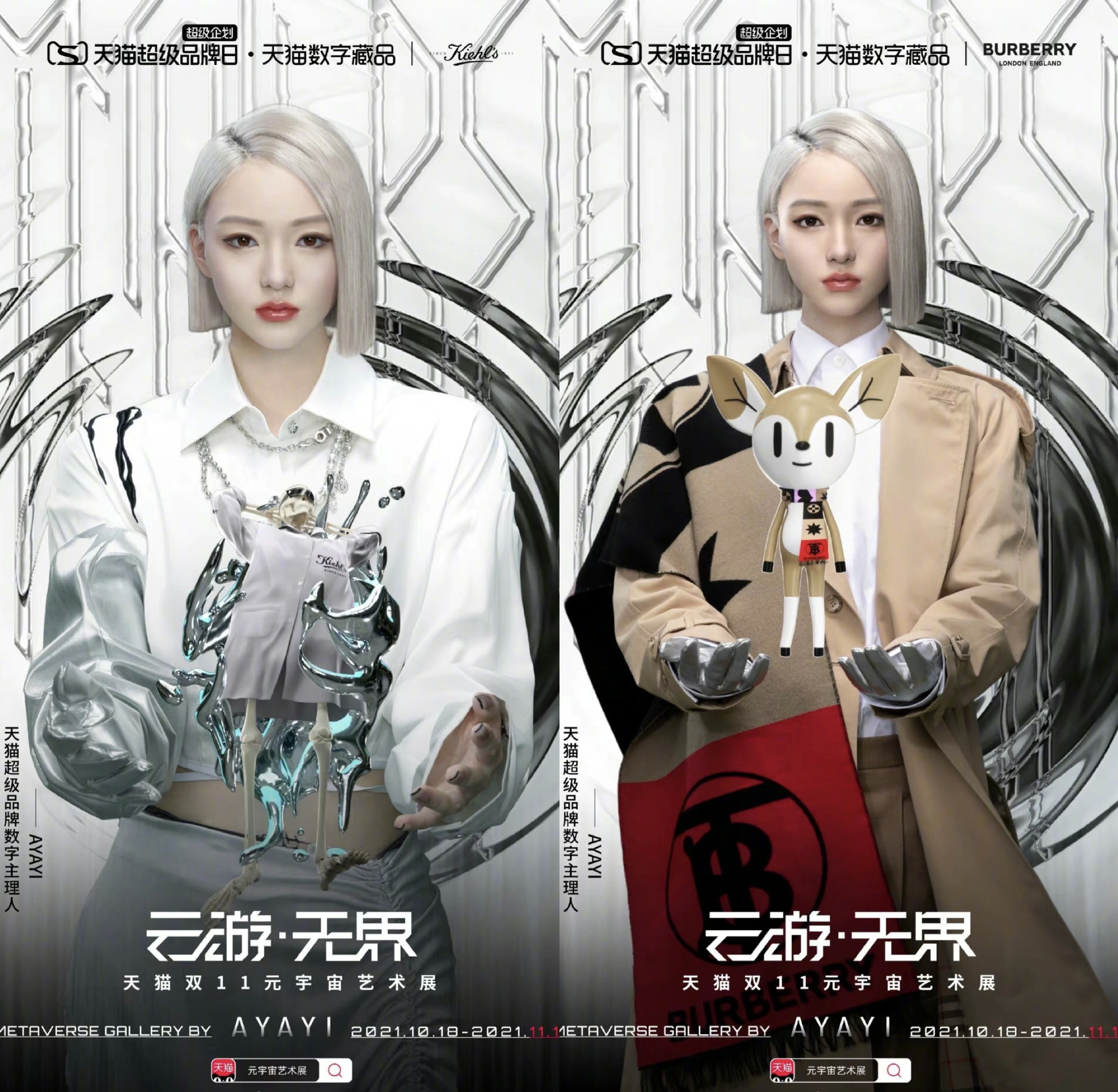 今年双11,阿里巴巴在其旗下电商平台天猫、淘宝APP上也推出了“双十一元宇宙艺术展”。而该展览则由Burberry 、 Kiehl’s、Maxmara、Laperla和瑞士手表制造商浪琴表等在内的八个品牌参与,所有这些品牌都为此次活动创建了NFT限量系列。例如,Burberry推出了1000条带有互动小鹿 NFT 的特别版围巾,消费者购买双11限量版实体产品即可免费获得。