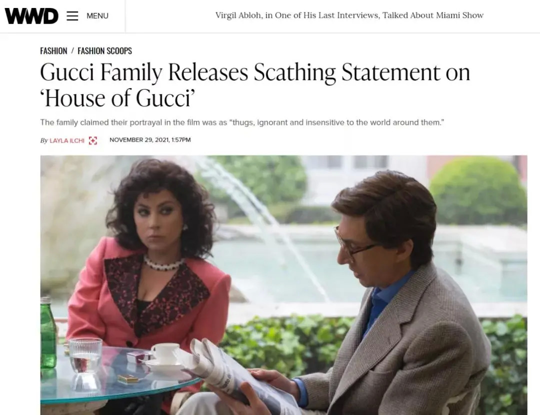 不过,近日Gucci家族却发布了官方声明,称由Ridley Scott执导的电影恶意将家族所有人丑化,描绘成自大、自私、无脑、疯狂的形象。且在拍摄期间,制作团队从来没有主动联系继承人或与其协商。