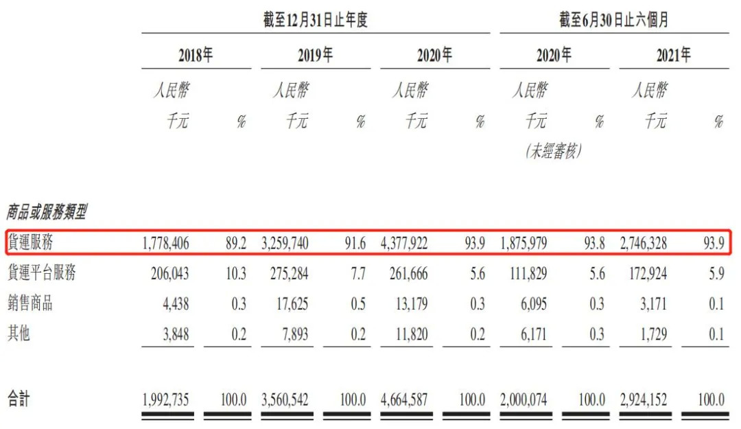 从业务结构来看,维天运通收入主要来源于数字货运业务。其中,货运服务营收占比持续超9成。