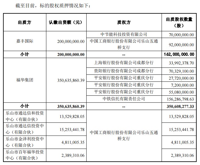 另外,福华集团及其一致行动人嘉丰国际(全称“嘉丰国际投资有限公司”)此前已经分别将所持有的标的公司福华通达的全部或大部分股份用于质押。福华集团出质3.51亿股,嘉丰国际出质1.62亿股。此前为了达成本次重大资产重组交易,这两家公司拟将这些股权质押事项办理解除质押。