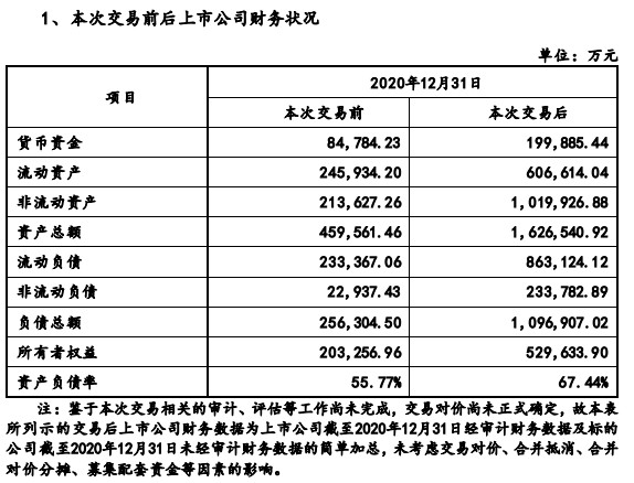 首先,如果本次交易能够完成,江山股份的整体规模将会大幅增长。资产总额会从交易前的45.96亿元增加到162.65亿元(增长2.5倍),所有者权益也从20.33亿元增到52.96亿元(增长2.3倍)。