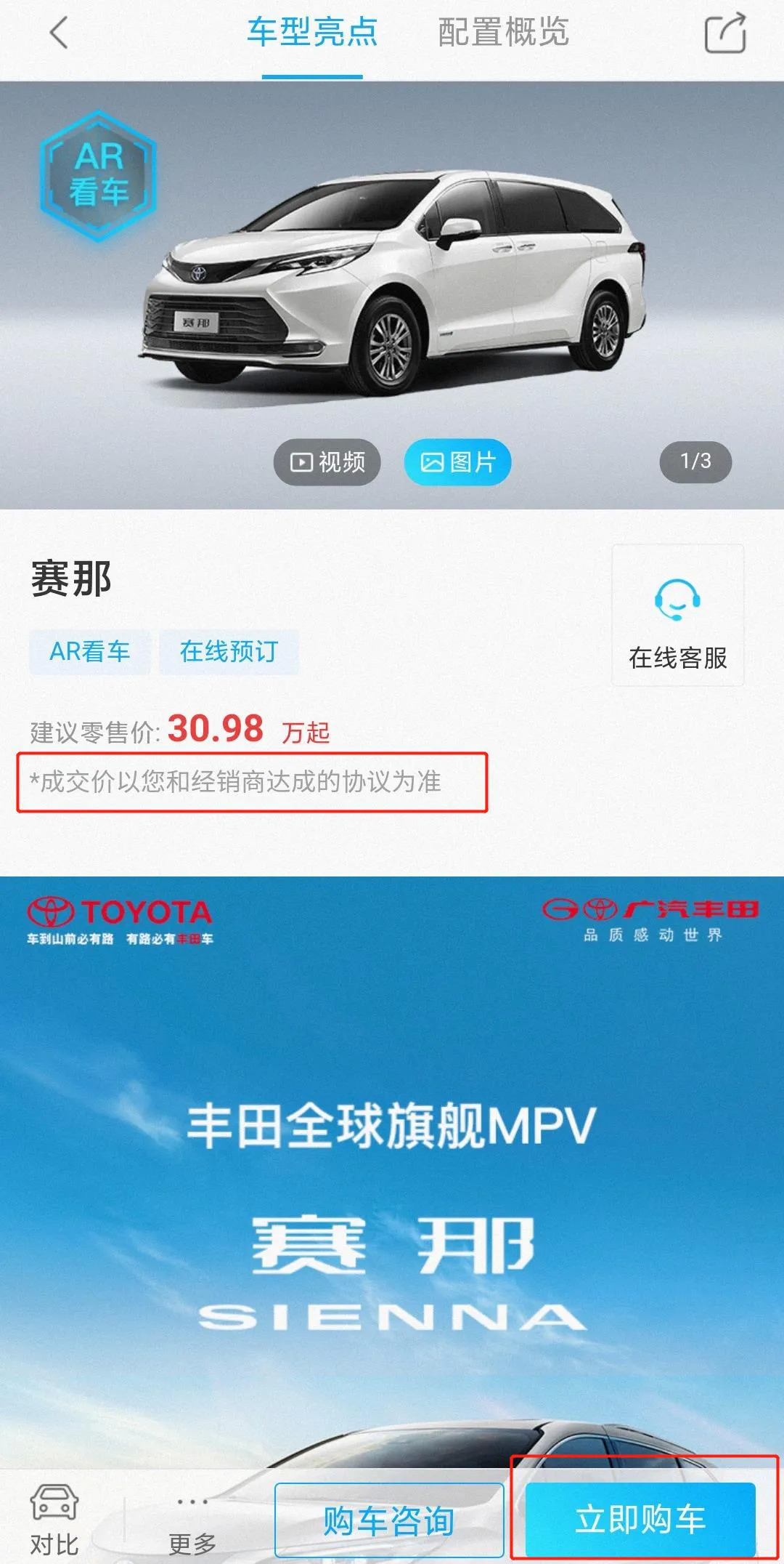 像这样的加价购车现象,其实不仅发生在丰田赛那一款车型中,与赛那同是MPV车型的埃尔法和威尔法、还有中大型SUV汉兰达等车型的线下销售过程中,都有存在。