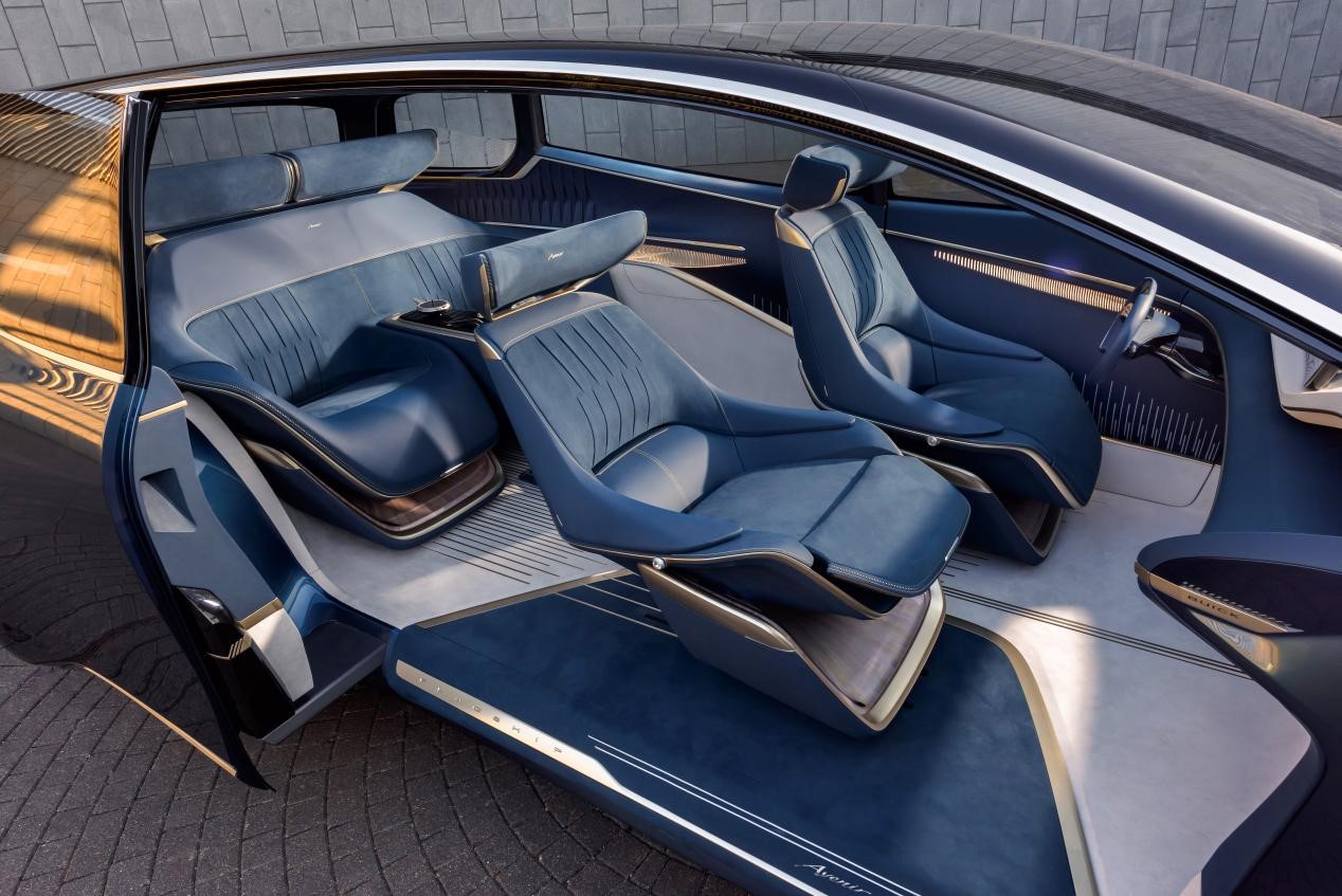 还记得19年运用了“水墨丹青”设计的GL8 Avenir概念车吗?取自中国山水画的月白与黛蓝配色相当惊艳。而在新推出的别克GL8旗舰概念车上,别克品牌更大胆、更深入的融合了众多中国元素,比如选取了靛青色与砂金这两种具有中国特色与意境的颜色,比如车窗上的山水窗线饰条设计,比如咫尺见山水的茶台,比如源自中国传统折纸艺术的座椅设计,比如将秸秆镶嵌于座椅骨架之中致敬非遗文化,这些“中国元素”的加入带来了独特的人文气息,赋予了别克GL8旗舰概念车别样的东方韵致。