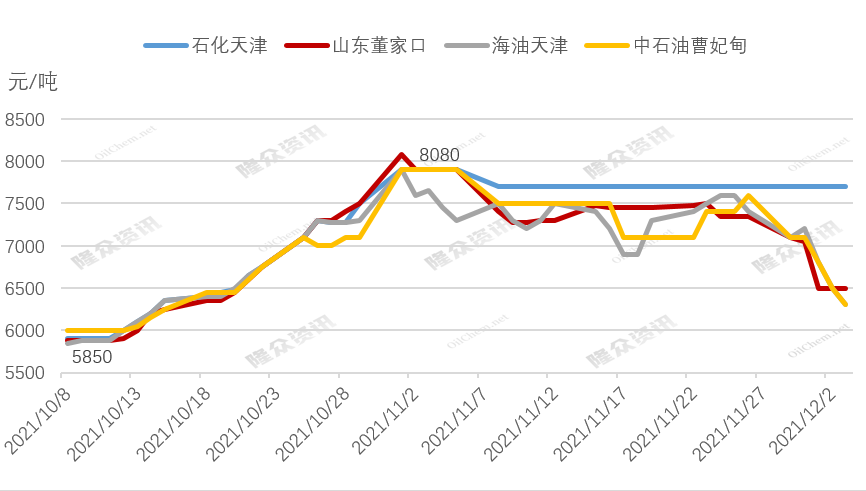 吕娜称,中石化董家口LNG接收站12月1日单日跌550元/吨,率先进入6500元/吨。