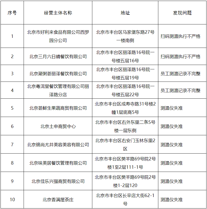 据北京“丰台市场监管”消息,近期,丰台区市场监管局严格按照疫情防控工作要求,持续加大监督检查力度, 现将检查中发现的问题通报如下:
