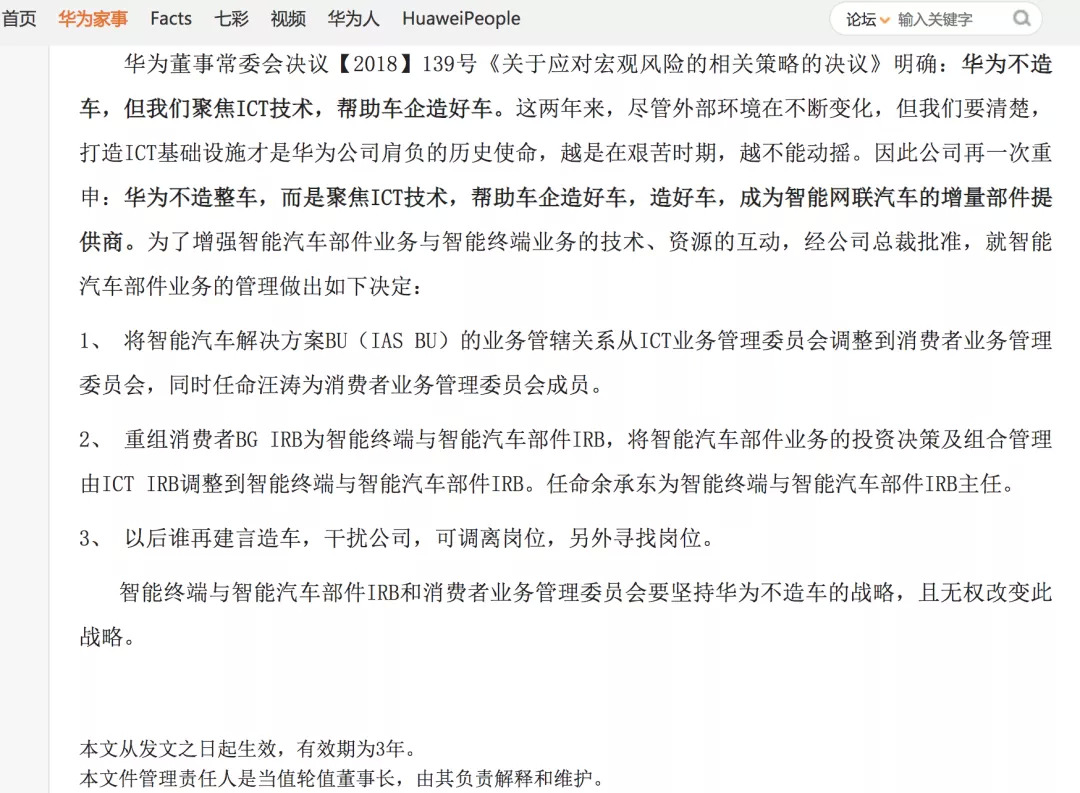 另外,当你回顾华为在心声论坛发布的,关于不造车的声明末尾,会发现上面写着:“本文从发文之日起生效,有效期为3年”。