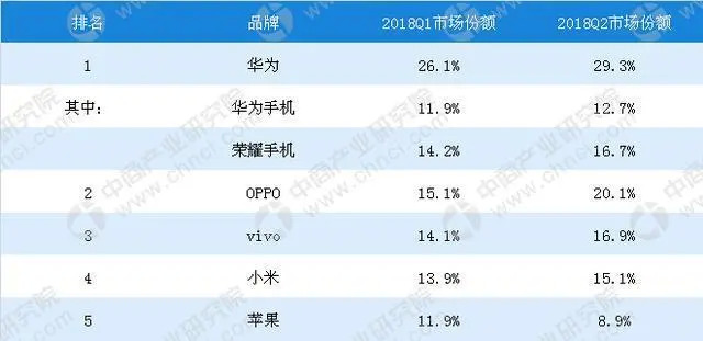 2018年前两个季度,荣耀品牌的国内手机市场份额分别为14.2%、16.7%,都要领先于华为品牌的11.9%、12.7%。