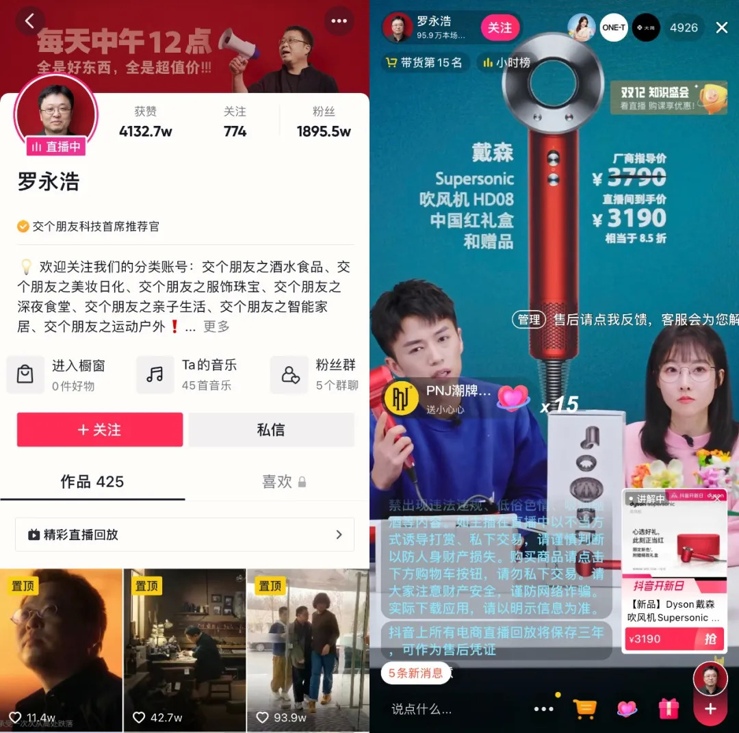 破局的拐点出现在去年8月“交个朋友”与苏宁合作的专场直播,销售额突破2亿,订单数量突破26.8万,累计观看人数超过1048万人。凭借货品资源的优势,罗永浩又坐回了“抖音一哥”,但这个位置并不稳定。