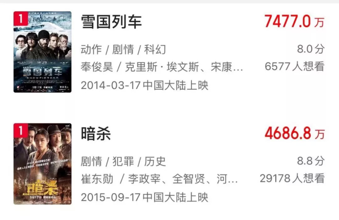 可惜蜜月期不到两年,2016年实施了“限韩令”。“限韩令”前,最后一部在中国上映的韩国电影为全智贤、何正宇主演的《暗杀》,仅收4686万票房。
