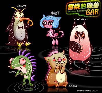 在工作之外,项目组的成员们也都是忠实的游戏玩家。田健在5区世界之树建了一个名为RESIST的联盟公会,“所有的游戏账号都是女性角色”;刘吉磊、吴健、沈志豪三人都在1区耐萨里奥服务器的部落公会渣渣团,不过该区联盟部落比例为9:1,著名篮球球星姚明也在该服务器,是一名巨魔盗贼,刘吉磊记得自己还有幸和姚明在一个服务器下过几次副本;刘峰在1区奥达曼组建了一个名为“暴风之息”的联盟公会,公会里包含了很多九城员工和合作伙伴、合作媒体的员工;王伟则在1区罗宁,也玩得十分重度,到了“燃烧的远征”时,他的9个职业的角色几乎都满级了。