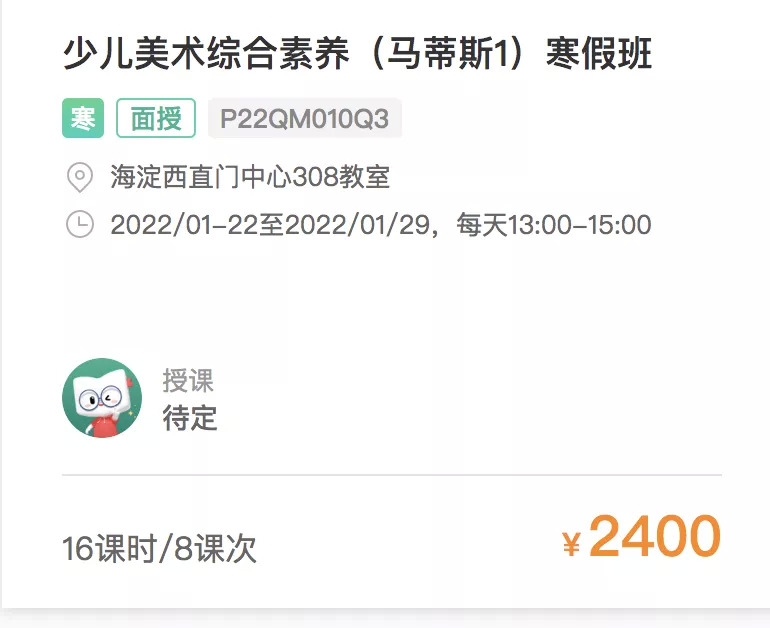 生源不足并不影响教育机构们同时在提高身价。Tech星球发现,相比于秋季的开设同样的美术类课程,寒假班的价格提升了1倍多。问询其他教培机构表示,寒暑假会相应提价,但不会涨幅这么大。