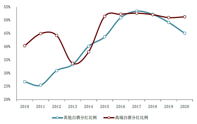 图表:高端白酒分红比例高