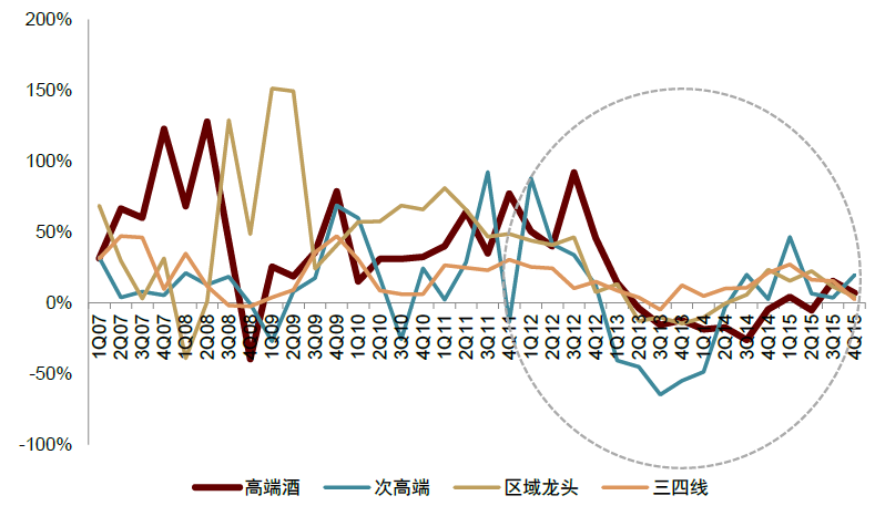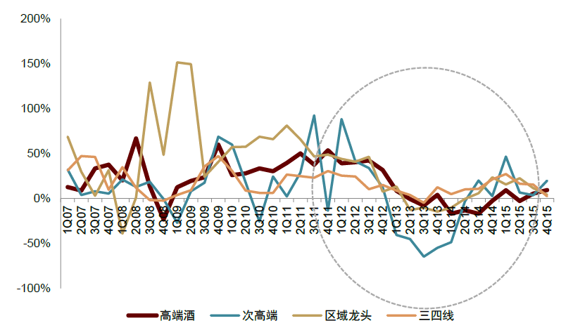 图表:高端酒在13-14年调整期营收下滑幅度更小