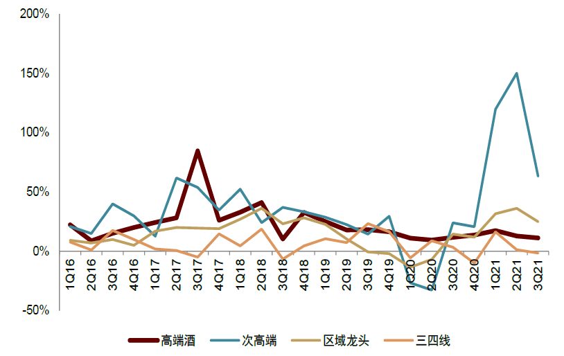 流动性边际转宽有望助推高端白酒成交价上涨,开启行业景气周期。央行三季度货币政策执行报告删去了“坚决不搞‘大水漫灌’”等表述,结构性货币政策工具有望发力;同时此轮变异病毒风险或令全球流动性收紧进程有所放缓,我们认为2022年边际宽松的货币空间有望打开,抬升优质资产价格。我们认为,流动性边际转宽有望推动高端酒成交价进一步提升,从而为行业价位升级打开空间。