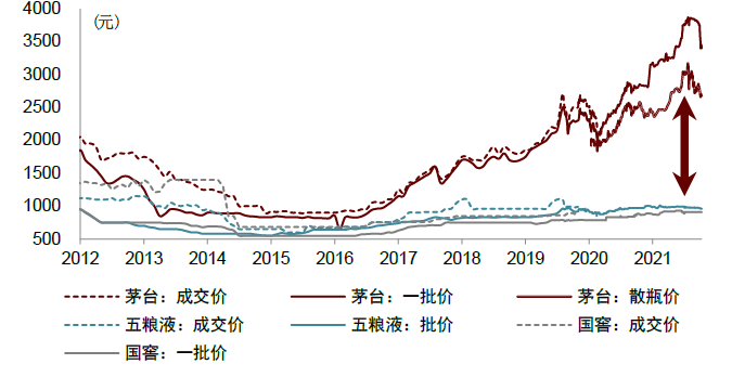 图表:高端白酒价格抬升,打开其他白酒价格空间