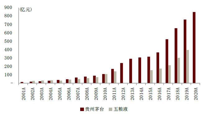 图表:茅台、五粮液收入体量