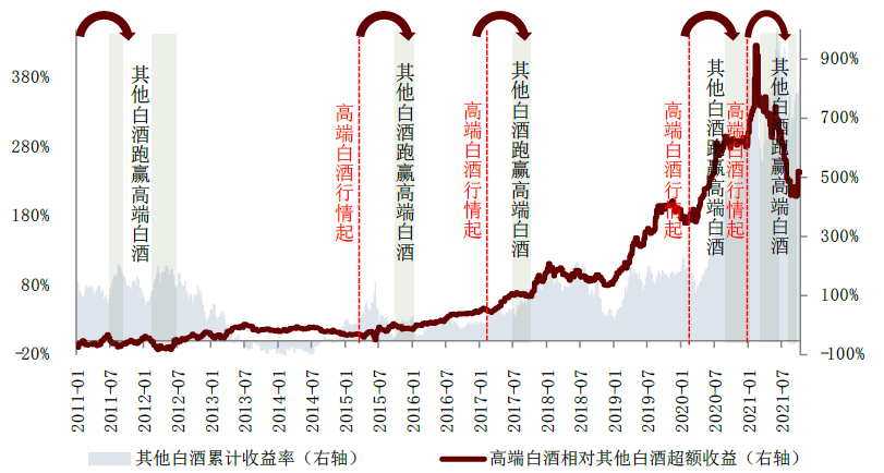 图表:高端白酒跑赢其他白酒时期