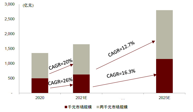 图表:千元和两千元价格带收入规模预测