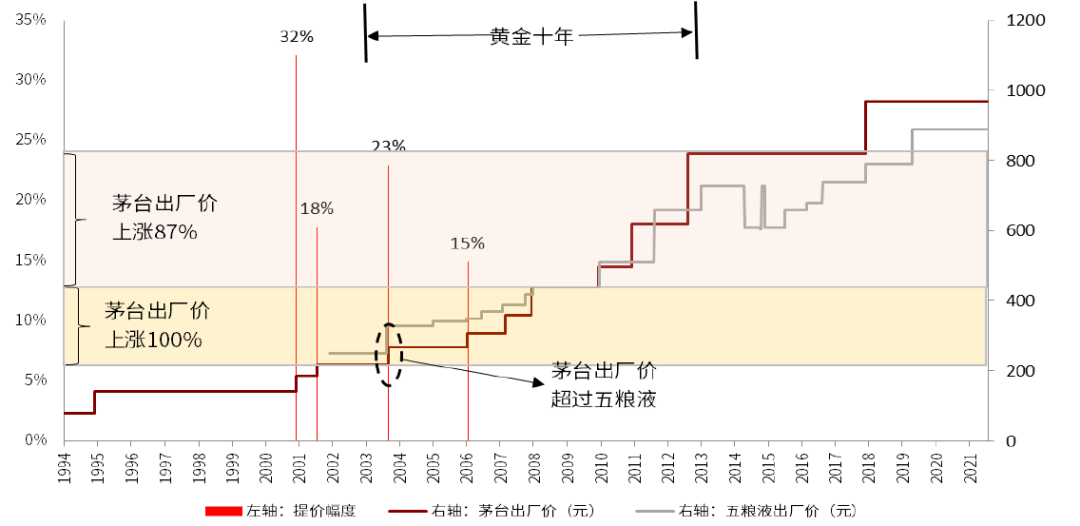 图表:茅台和五粮液出厂价提价趋势