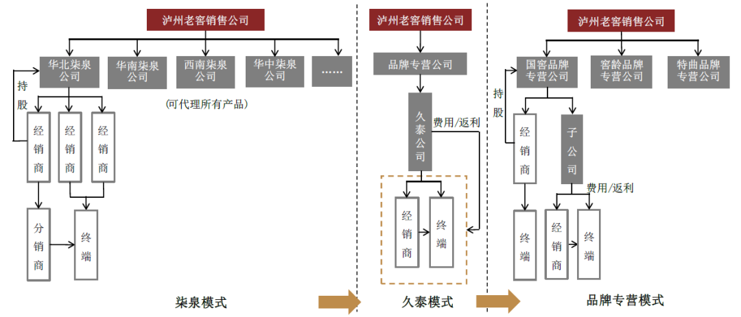 图表:泸州老窖三种渠道模式演变示意图