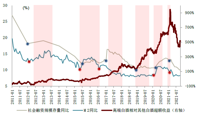 图表:流动性边际转宽后,高端白酒领涨白酒行业