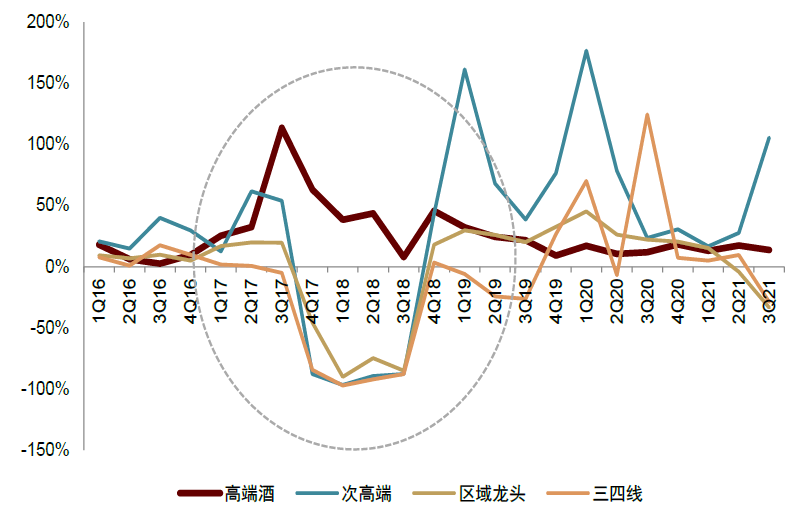 图表:高端酒营收增长波动较低