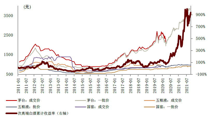 图表:历史来看,高端白酒在高景气下涨价效果明显,打开了其他白酒价格空间