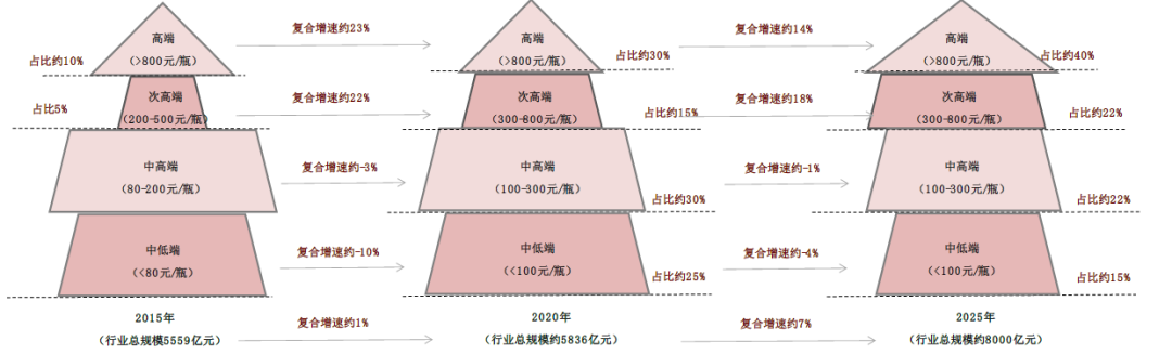 高端价格带2025年有望达到3200亿元(复合增速13.5%),千元价位增速高于整体