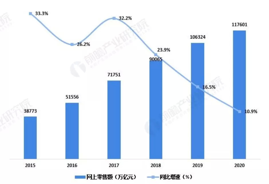 国家统计局最近披露的网络零售市场规模增长率数据也显示,我国线上零售市场的增速在逐步下降,从2018年的23.9%到2019年的16.5%,再到2020年的10.9%。