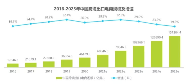 根据艾瑞咨询发布的《中国跨境电商出口物流综合服务行业研究报告》显示,2020年中国跨境电商出口市场规模达到了46479.2亿元,同比增长26.9%。而各国针对疫情出台管控举措仍在提升线上消费渗透率,预计2025年中国跨境出口电商市场规模将达到15.1万亿元。