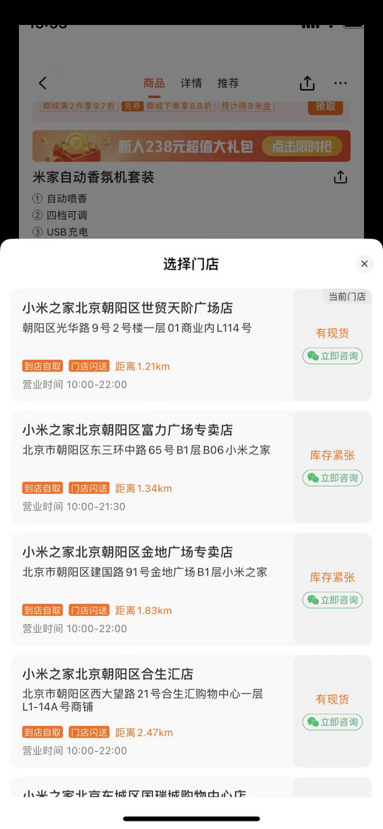 在小米商城购买手机,除了能选择仓库配送,还支持附近门店闪送以及自提。小米此举其实是将原本自身的利润分出部分给到了渠道,这也是华为、荣耀以及OV没能做到的事。