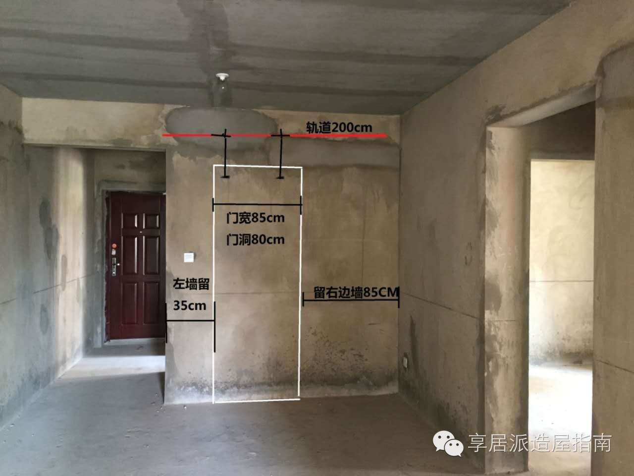 2.在门洞上方开始安装轨道(安装高度需结合门洞及门板精确控制)。