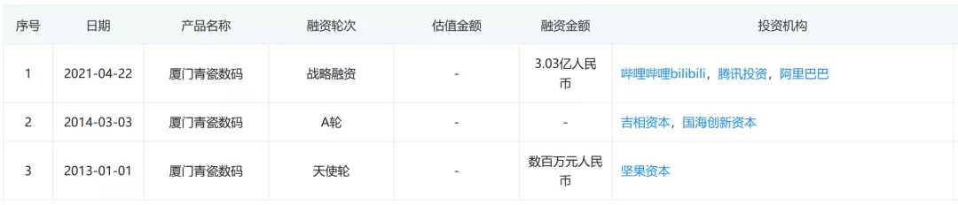 受爆款产品驱动,今年4月,腾讯、阿里巴巴、哔哩哔哩分别向青瓷游戏注资1.01亿,1个月后,三家公司又与博裕资本一起,再度分别向其注资1.01亿。