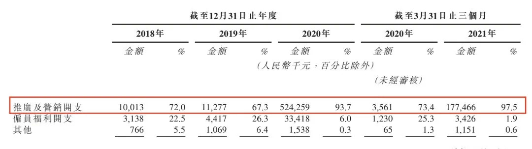 招股书数据显示,2018年至2020年,青瓷游戏的推广及营销开支分别为0.1亿元、0.11亿元、5.24亿元,其中,2020年的营销费用同比增长4663%。而在今年第一季度,公司的营销费用仍然达到1.78亿元。