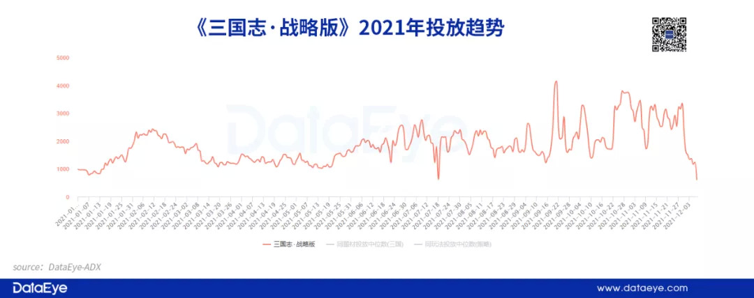 参考DataEye-ADX投放数据平台,分析了2021年1月1日至今,各重点三国SLG手游买量情况: