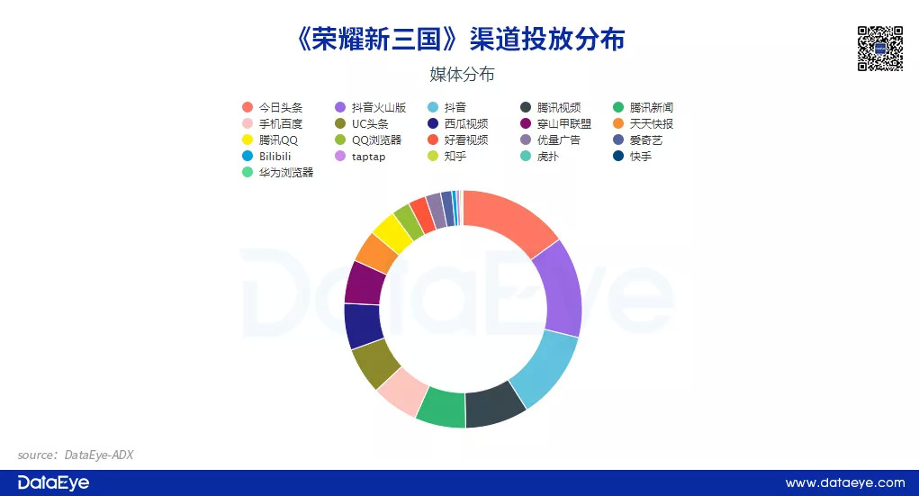 此外需要注意的是,《三国志·战略版》高强度大规模的投放挤压了其他产品的空间,倘若想在三国SLG领域突围,或许需要思考在创意素材上以及投放渠道上形成差异化,成为“破局之势”。
