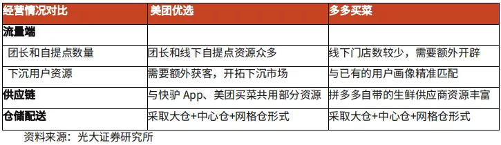 针对行业竞争情况,光大证券认为,综合订单数据、仓储资源等因素来看,目前,美团优选与多多买菜各有优劣势。