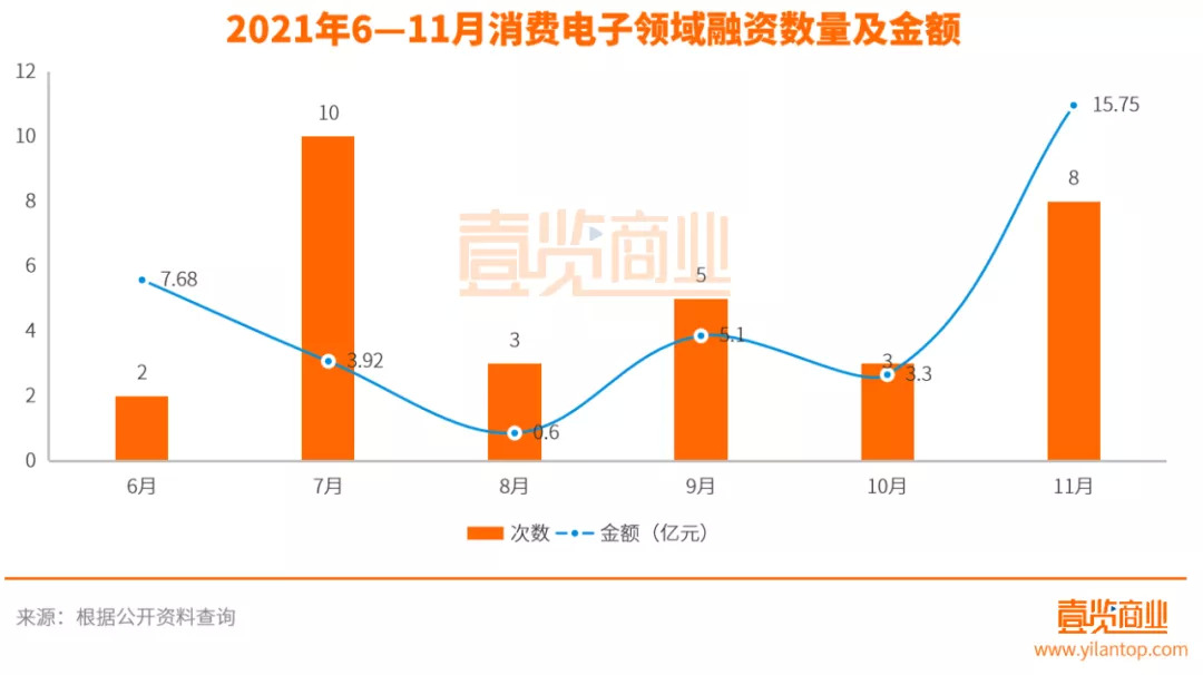 值得注意的是,亿元级融资主要集中在食品领域,占12起,其次消费电子3起,美妆1起。
